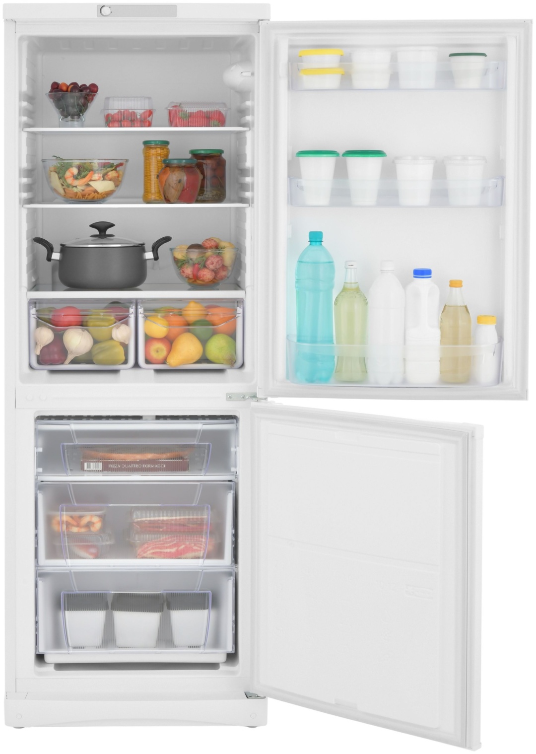 Классическая система охлаждения обеспечивает естественную влажность внутри камеры, благодаря чему продукты не пересушиваются и дольше сохраняют свежесть. Полки позволяют удобно распределить продукты по зонам хранения, а морозильное отделение подходит для ежедневного запаса мяса, рыбы и полуфабрикатов.