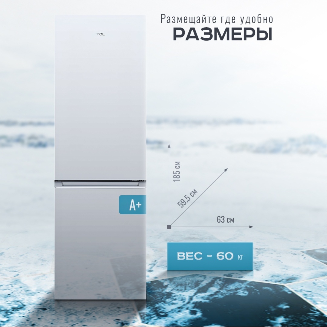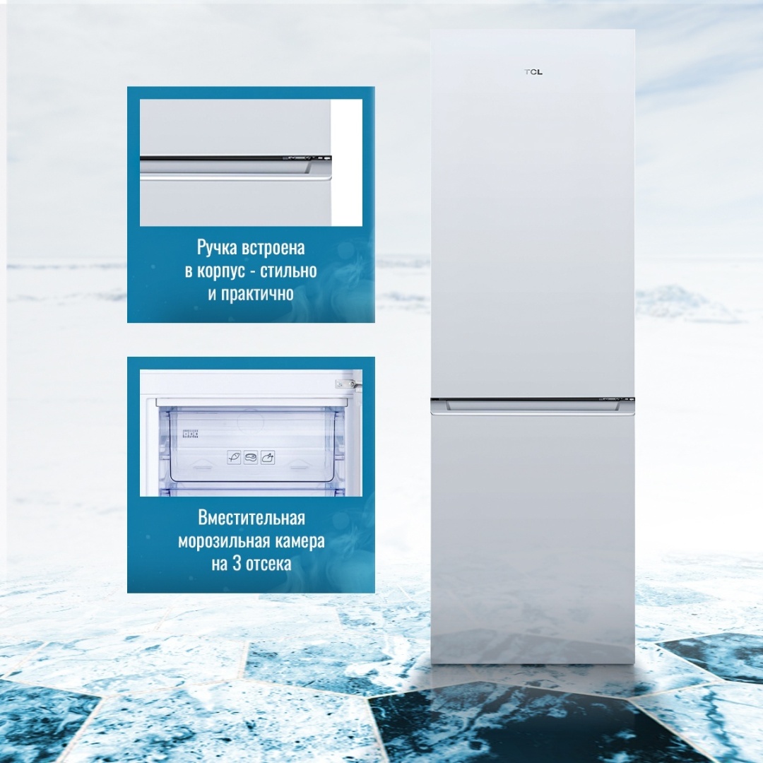 Внутреннее пространство организовано удобно: регулируемые полки, вместительные дверные карманы и отдельный ящик для овощей позволяют рационально использовать каждый литр объёма. Холодильник TCL станет практичным решением для ежедневного хранения продуктов и комфортного использования.