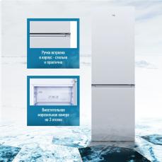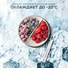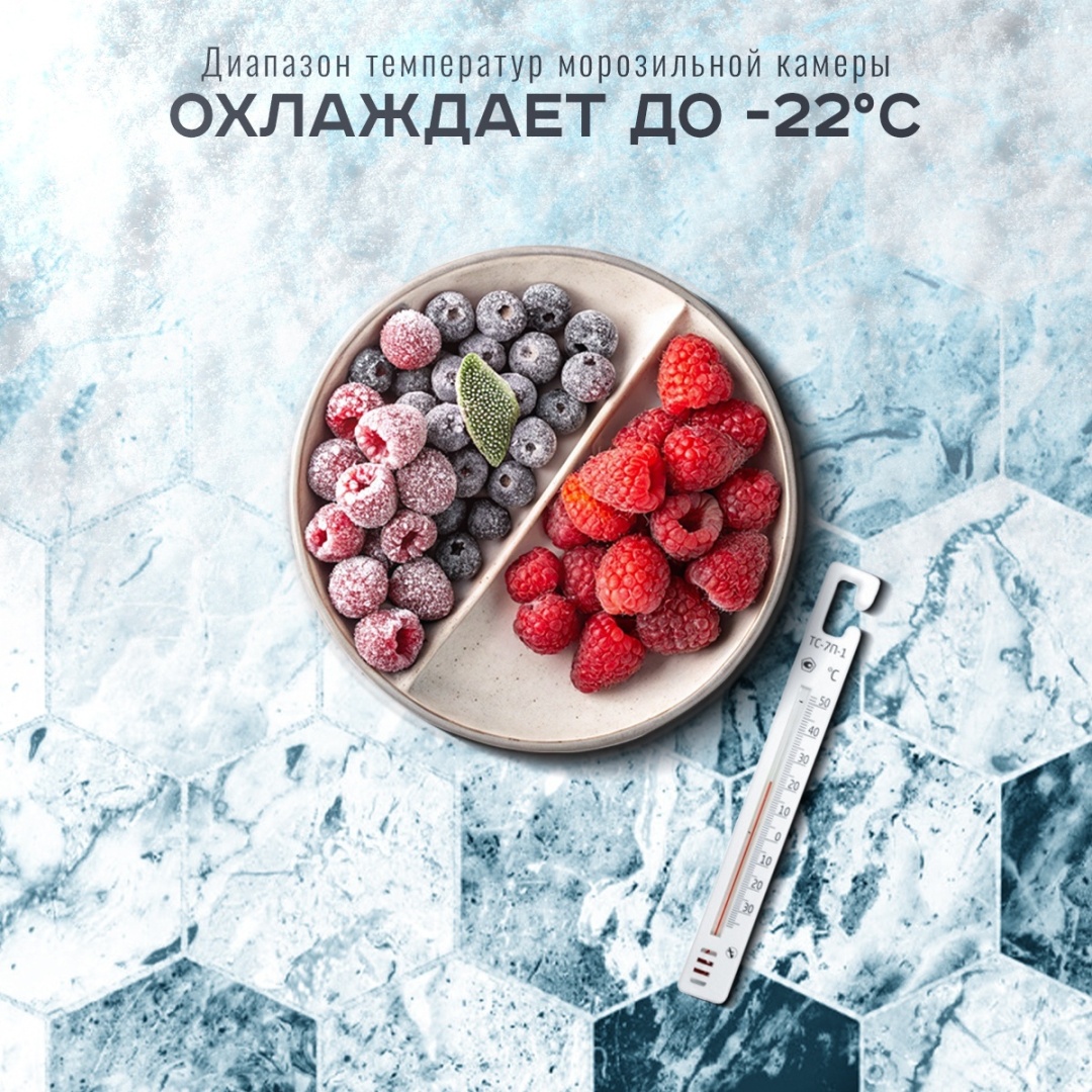 Инверторный компрессор автоматически регулирует мощность охлаждения, благодаря чему холодильник работает тихо и потребляет меньше электроэнергии. Система No Frost предотвращает образование льда и избавляет от ручной разморозки, а зона свежести помогает дольше сохранять мясо, рыбу и овощи.