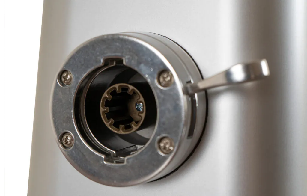 Металлический корпус повышает прочность конструкции и устойчивость при работе, а металлическое соединение шнека рассчитано на длительную эксплуатацию. Самозатачивающийся серповидный нож из нержавеющей стали обеспечивает равномерный помол и не требует частой замены или обслуживания.